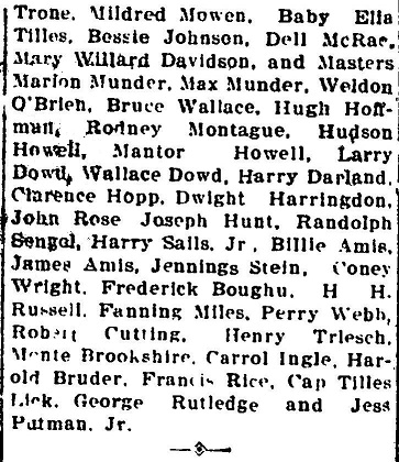 Haglin, Eadie, Hoffman, Mantor, Phillips, White, Frederick, Kauman, Tucker, Hardgrove, Kelleam, Lair, Hunder,
