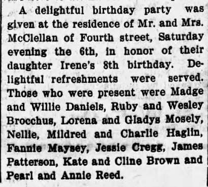 Irene McClellan's 8th Birthday Party