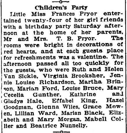 Miss Frances Pryor's Birthday Party