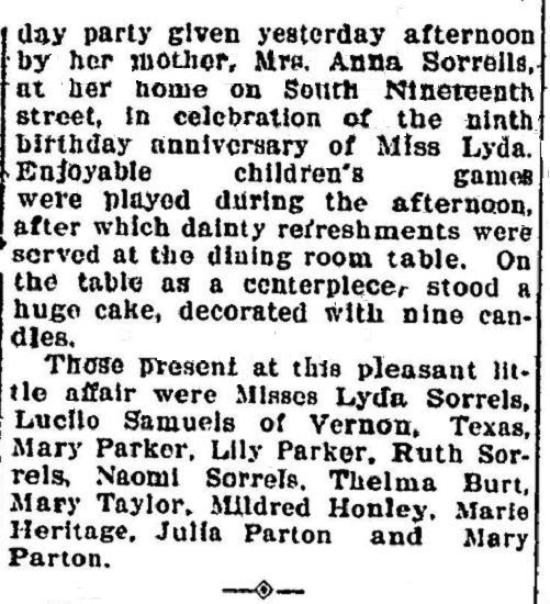 Miss Lyda Sorrels' 9th Birthday Party