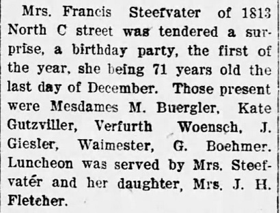 Mrs. Francis Steefvater's 71st Birthday Party