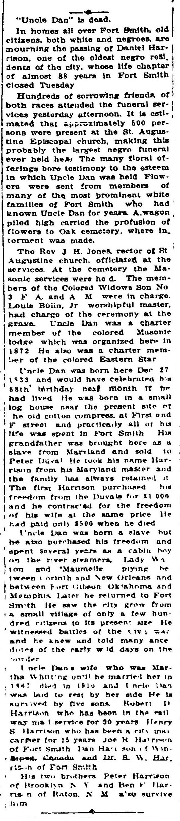 "Uncle Dan" Harrison's Death