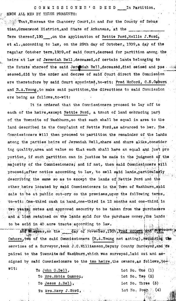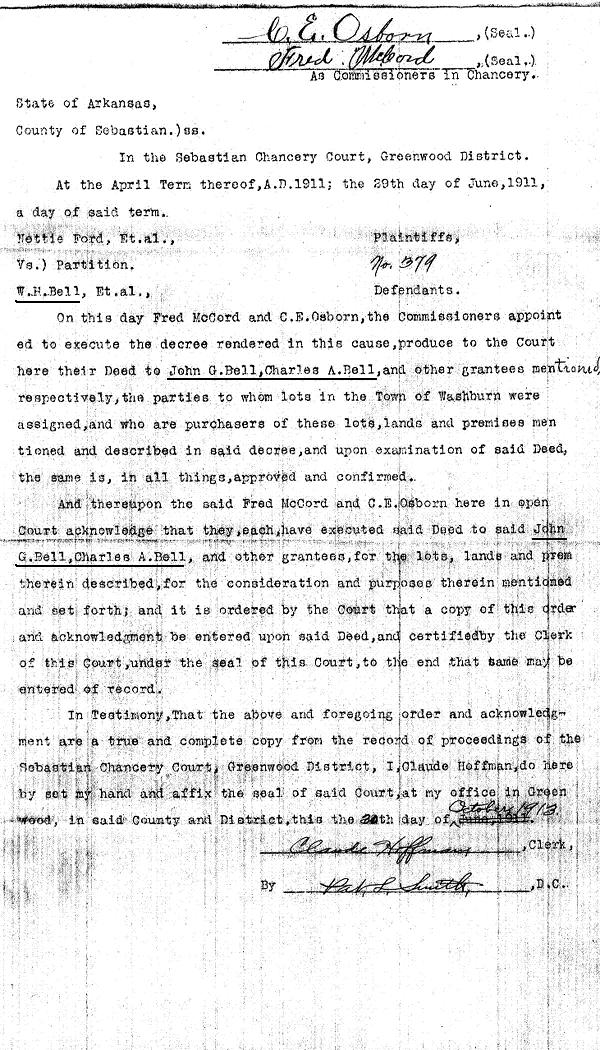 Names mentioned below: Nettie Ford,   Mollie J. Word,   Fred McCord,   C.E. Osborn,   R.A. Young,   John G. Bell,