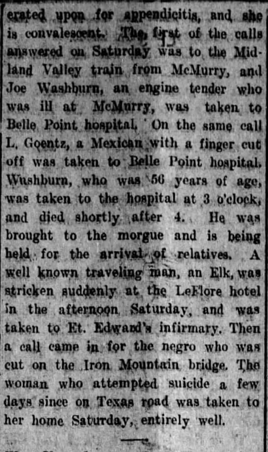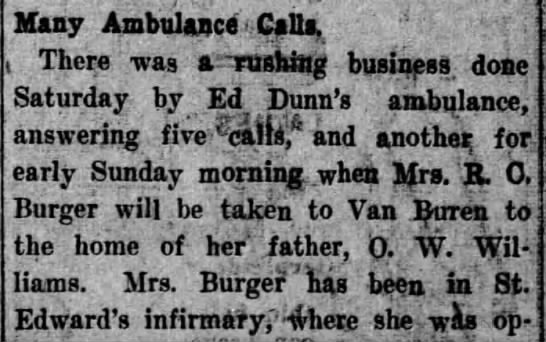 names mentioned:Dunn, Burger, Williams, McMurry, Washburn, Goentz,