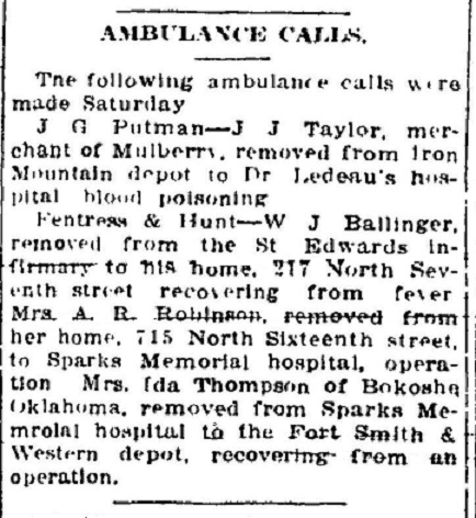 names mentioned: Putman, Taylor, Fentress, Hunt, Ballinger, Robinson, Thompson