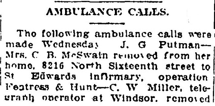 names mentioned: Putman, Finch, Northrup, Woods, Bell, Frazier, Simons