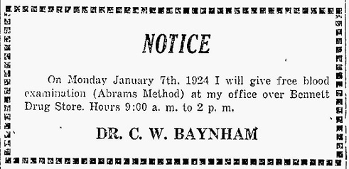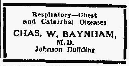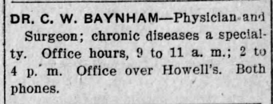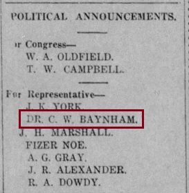 Dr. Charles William Baynham (7 June 1870 – 10 November 1952) was the son of Joseph Gideon Baynham and