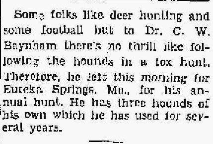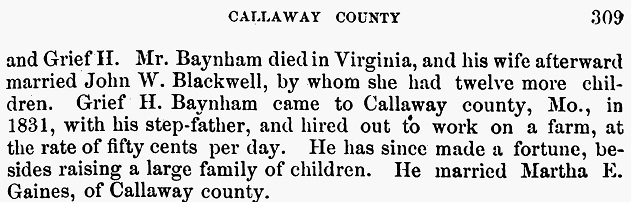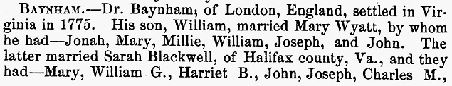 "...My great-grandfather, John Baynham, came to this country about 1790 and settled in Virginia. About 1830, his three