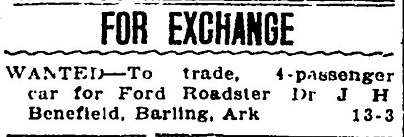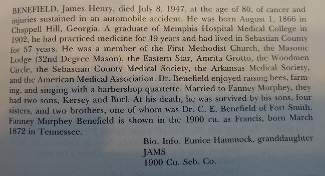 His brother C. E. Benefield also practiced medicine in Sebastian Co. Ar.
