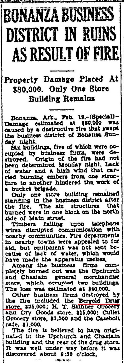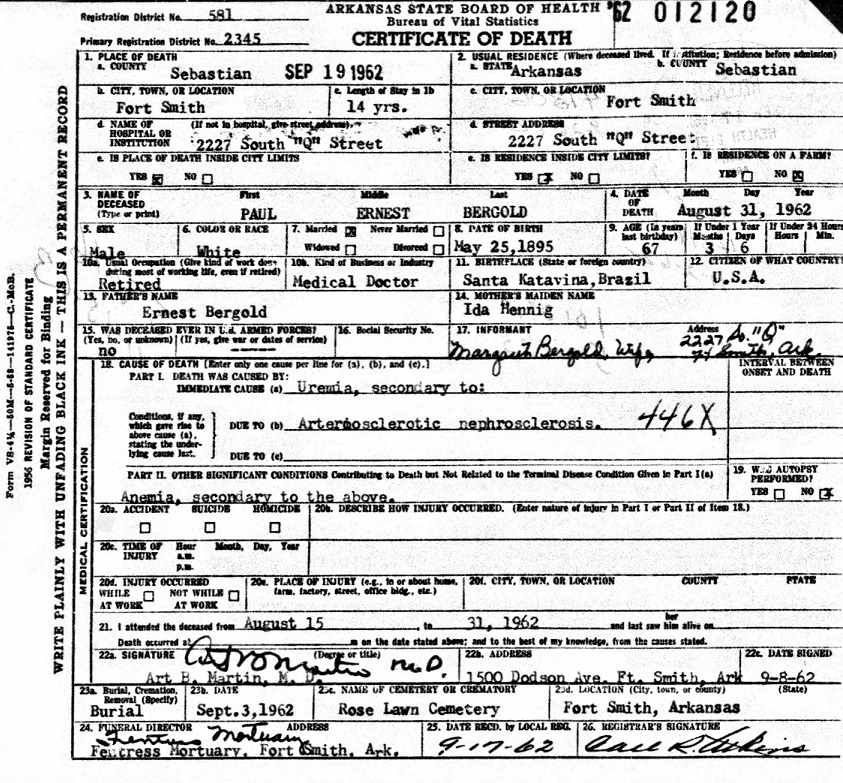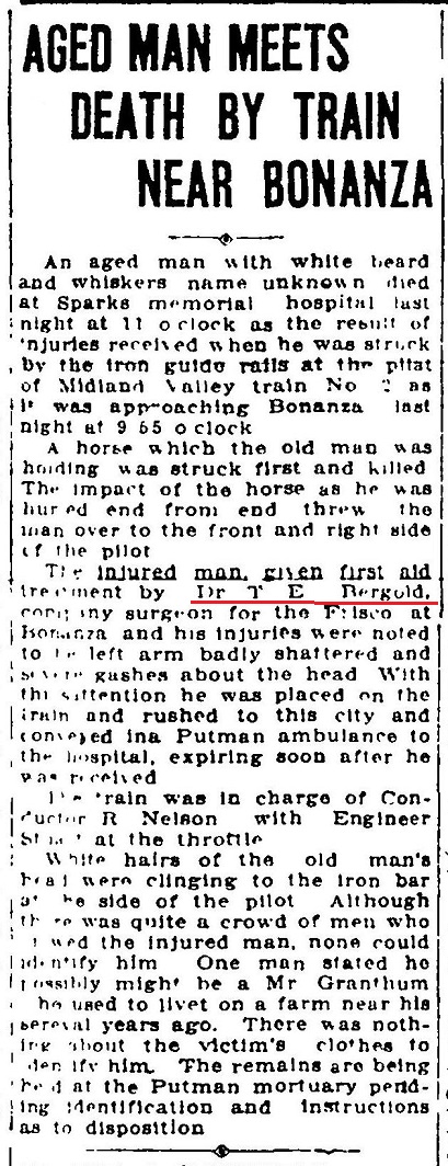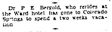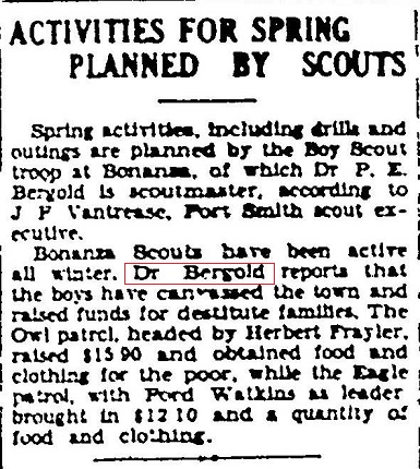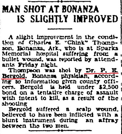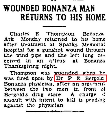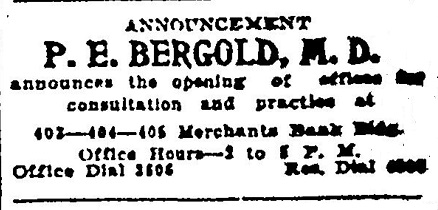 Bergold, Paul Ernest, born 1895 physician and dentist, came to Bonanza in 1922, the same year he graduated from the Medical College in