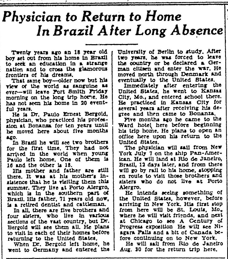 Kansas City, Missouri. Dr. Bergold was born and reared in Brazil, the son of a dentist, where he studied dentistry under his father and brothers.