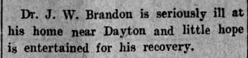 Dr. William J. Brandon physician and surgeon of Dayton, was born in Shelby County, Tenn., in 1837, his parents being