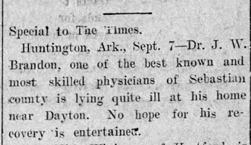 In 1872 he went to Texas and in 1881 came to Sebastian County. Since 1882 the Doctor has practiced medicine and engaged in the drug business