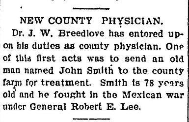 A longtime city physician and surgeon, Dr. J.W. Breedlove, died at age 80 on Aug. 16, 1906.
