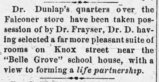 of Dr. Dunlap. Mrs. Dunlap is a member of the Ladies' Relief Union. Dr. Dunlap is a member of the pension examination board, and