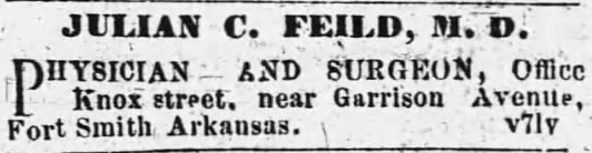 At the end of the Civil War, Dr. Field located at Fort Smith, Arkansas, where for eight years he practiced medicine. In 1872, he