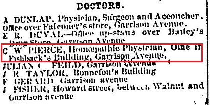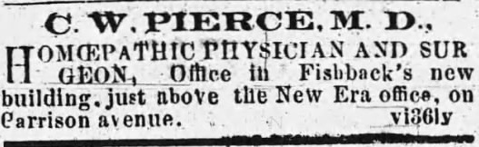 Dr. C. W. Pierce was born in Illinois about 1840. He can be found on the 1870