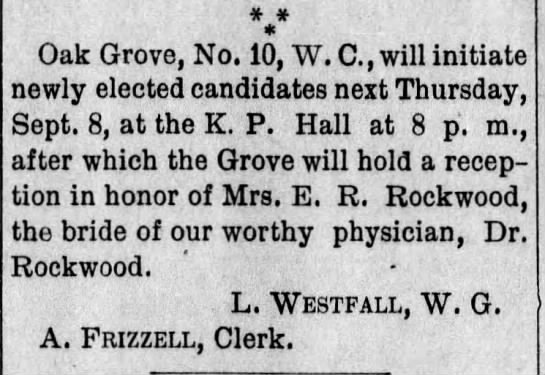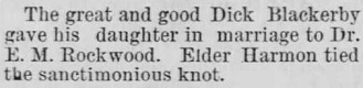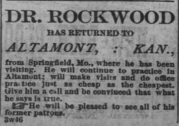 Dr. Rockwood married on March 1, 1881 in Labette, Kansas to Clementine Blackerly.