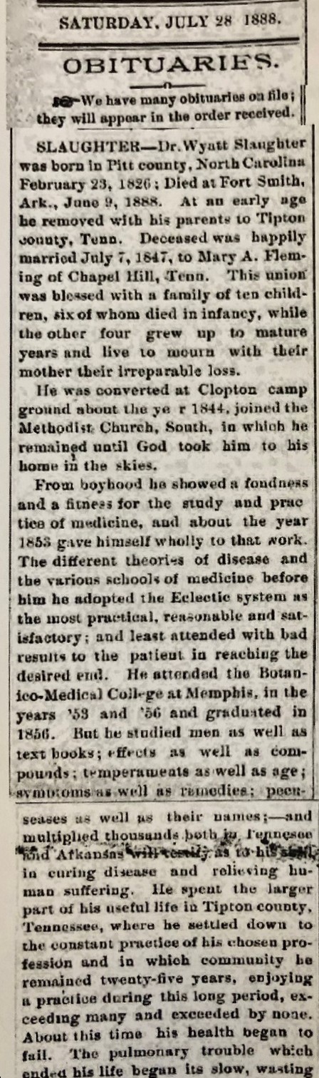 with his father-in-law. Dr. Wyatt Slaughter, till 1882. In 1883