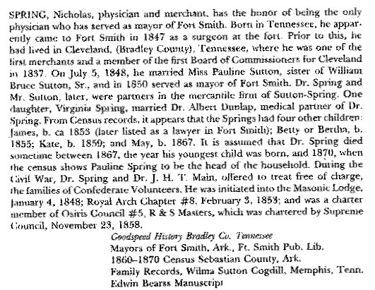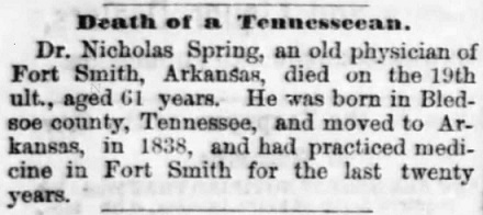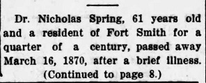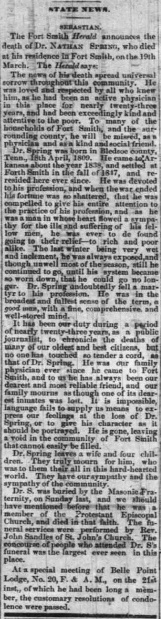 Dr Spring died in 1870 at Fort Smith Arkansas.