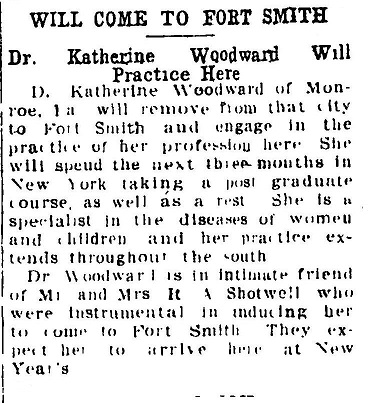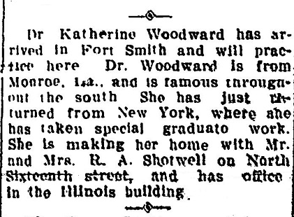 She was listed as a physician in the 1910 and 1911 Fort Smith City Directory.