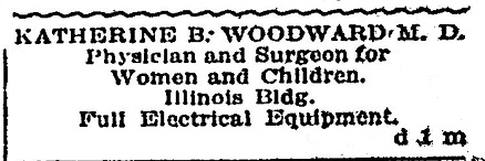 Woodward, Katherine B. was licensed by the Homeopathic Medical Board on February 6, 1909