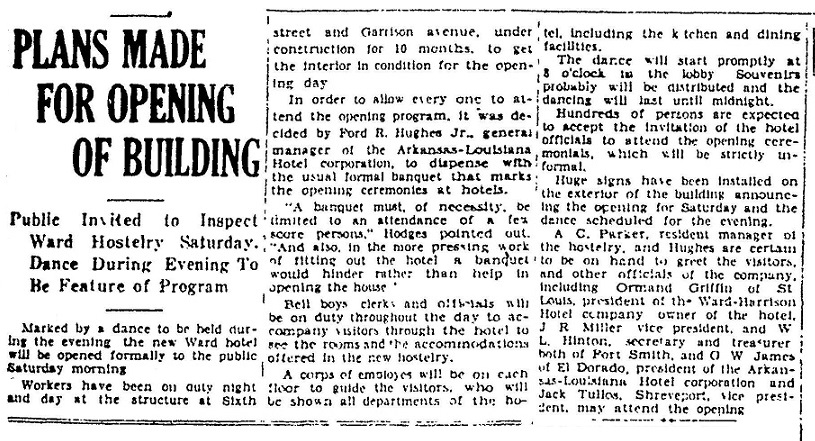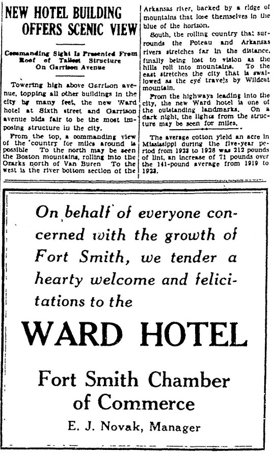 The Ward Hotel in Fort Smith, Arkansas, opened on December 14, 1929, at 6th Street and Garrison