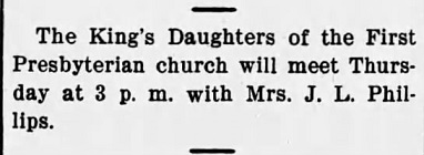 of the original members were John F. WHEELER, Joseph BENNETT and Mrs. Margaret F. BAIRD. Mrs. H.B. SPARKS, wife of Mitchell SPARKS,