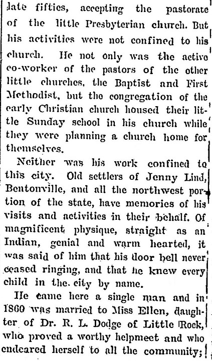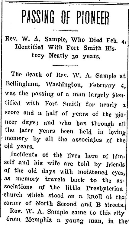 The death of Rev. W. A. Sample & the Early History of the Presbyterian Church in Ft. Smith