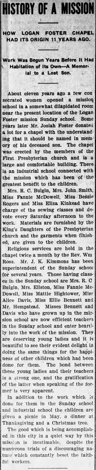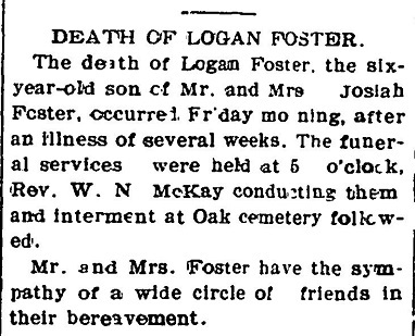 Logan Foster was the six year old son of Mr. and Mrs. Josiah Foster.