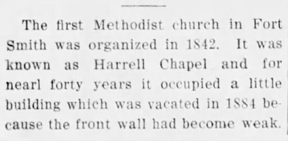 of his early connections with Methodism, he was known as the "Father of Fort Smith Methodism" and the church was named Harrell's Chapel.