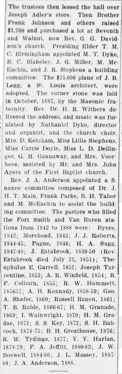 Fort Smith Methodist (or M E) Church History