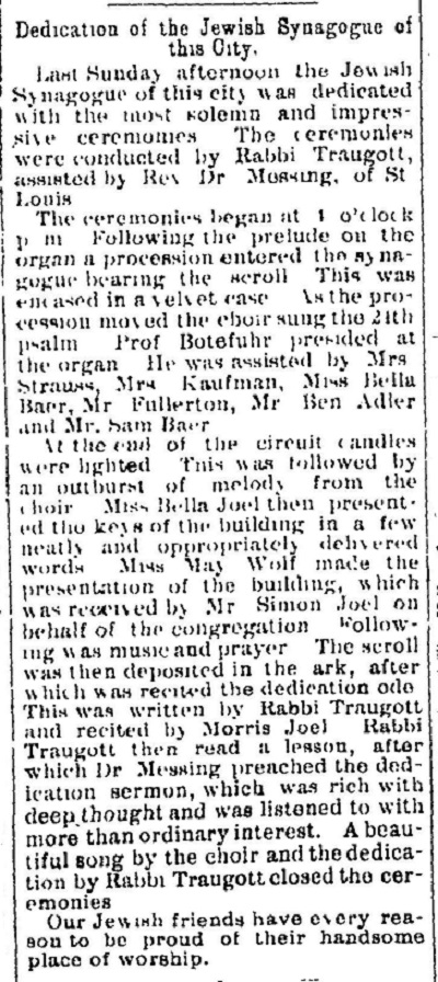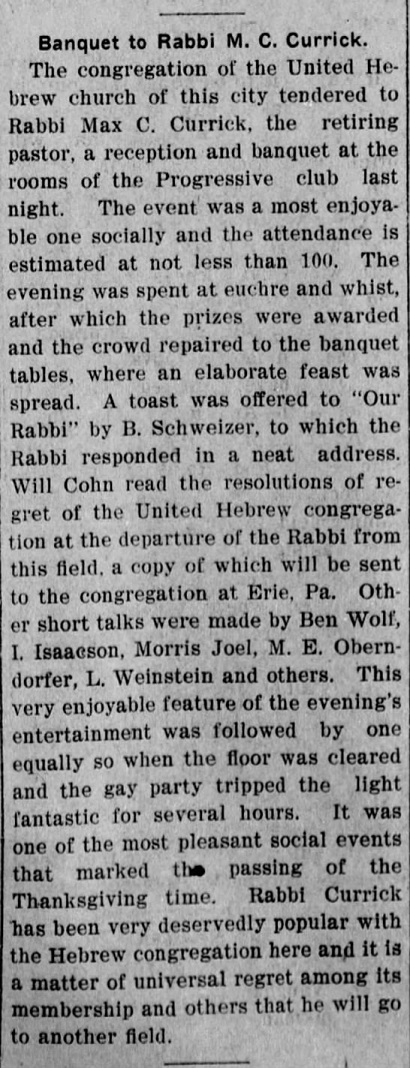 names mentioned: Baer, Mayer, Wolf, Joel, Morris, Bloch, Goldsmith,