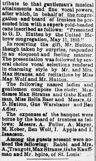 names mentioned: Hatton, Wolf, Strauss, Traugott, Kauffman, Baer,