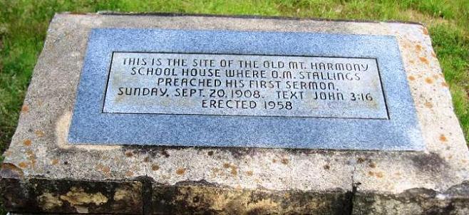 The two pictures under the church building photo are of the O.M. Stallings memorial