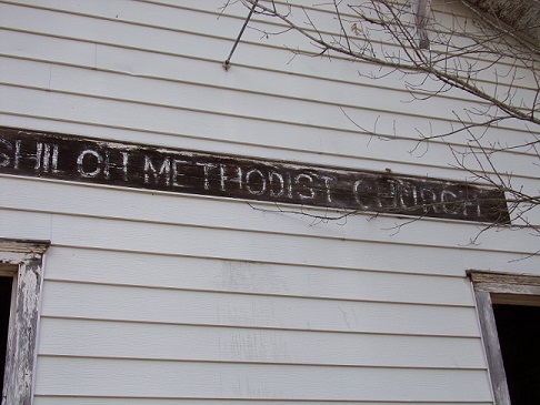 The first organization of M. P. Church after the Civil War, at Shiloh was made by Rev. Blake Wilson about 58 or 60 years ago. It was organized with 40 charter members: John Dill and wife Mary, with other men and their wives, in the old house with shed and fire place which stood west of cemetery.
