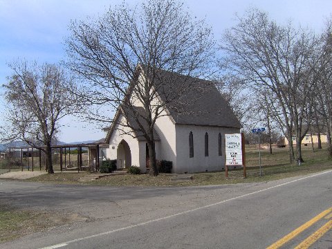 complete, including stained glass windows and pews donated by the late B. A. McCONNELL from his funeral home in Greenwood, the little House of