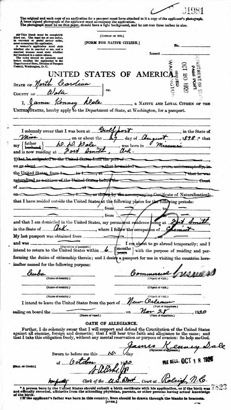 James Kenny Dole - 1920