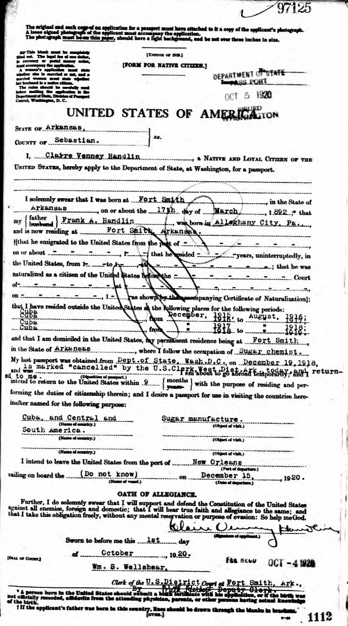 Claire Venney Handlin - 1920