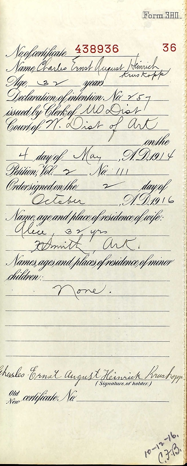 Charles Ernst August Heinrich Kruskopp 1919