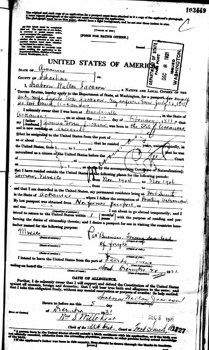 Seaborn Walton Jackson - 1921