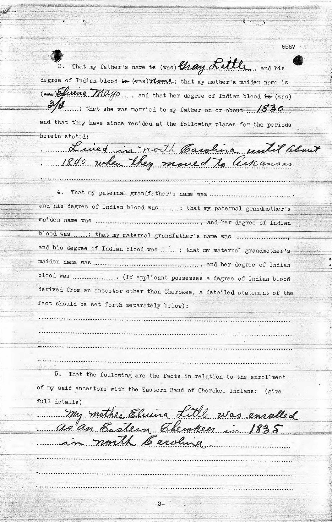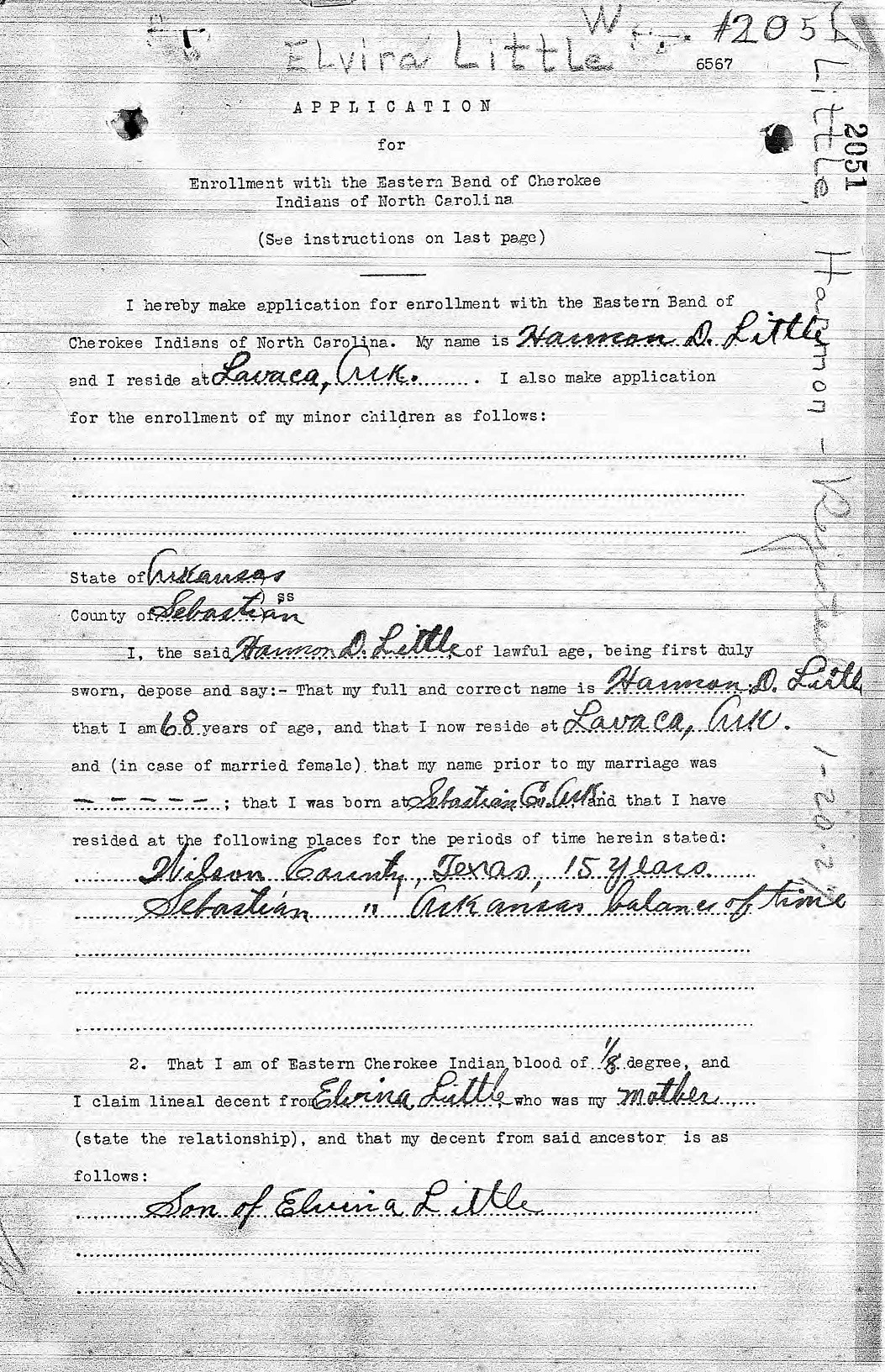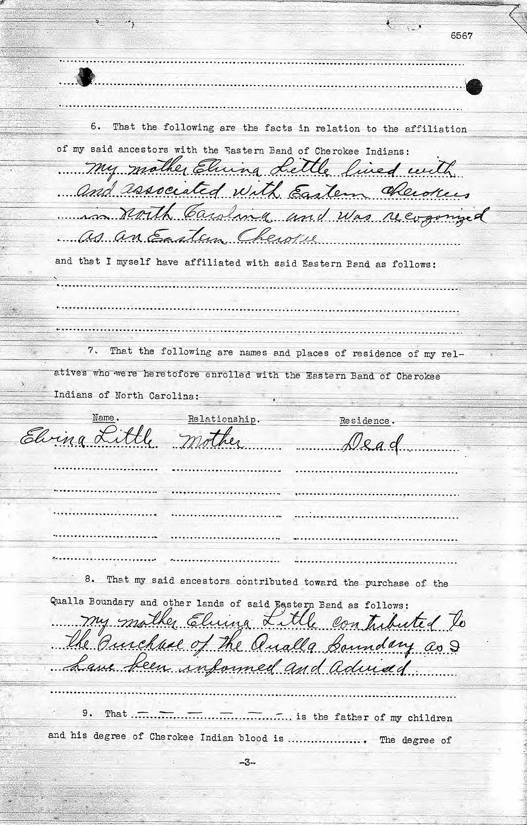 Application for Enrollment with the Eastern Band of Cherokee Indians of North Carolin