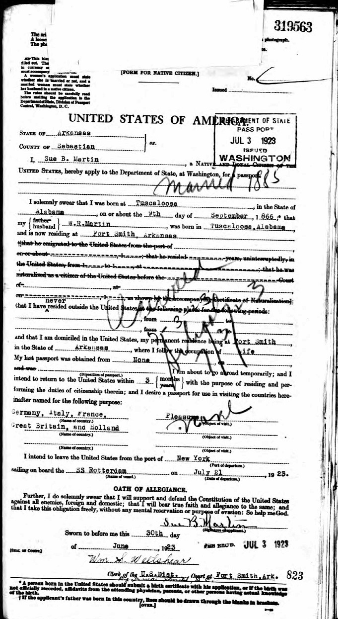 Sue B. Martin - 1923