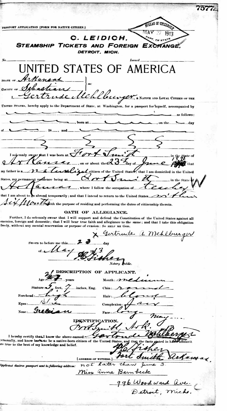 Gerturde A Mehlburger - 1913
