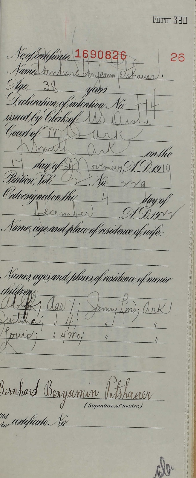 Bernhard Benjamin Petschauer - 1919