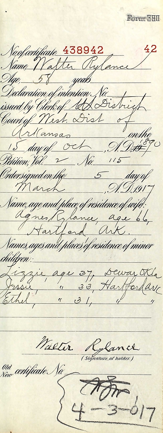 Walter Rylance - 1890