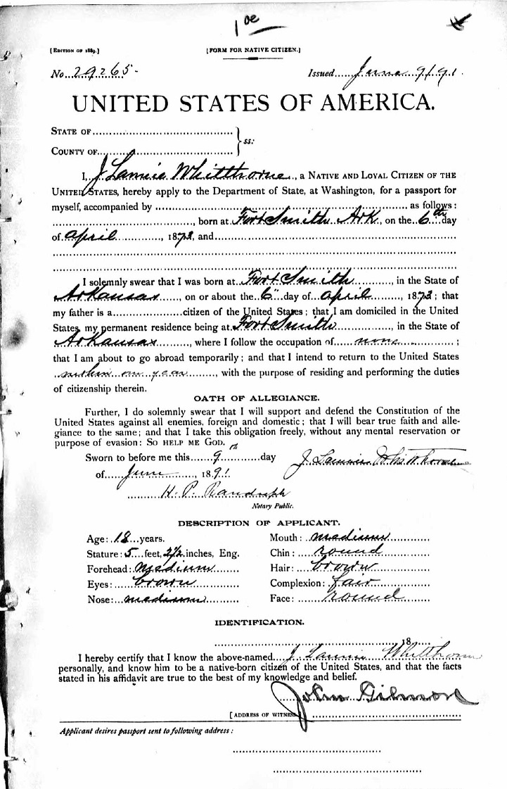 J. Lannie Whitthorne - 1891