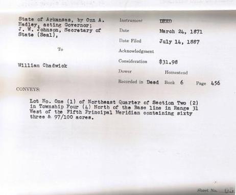 Excerpts from Land Abstract for NW 1/4 Section 2 Township 4 North Range 31 West