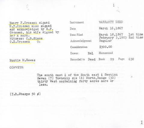 Excerpts from Land Abstract for W 1/2 SW 1/4