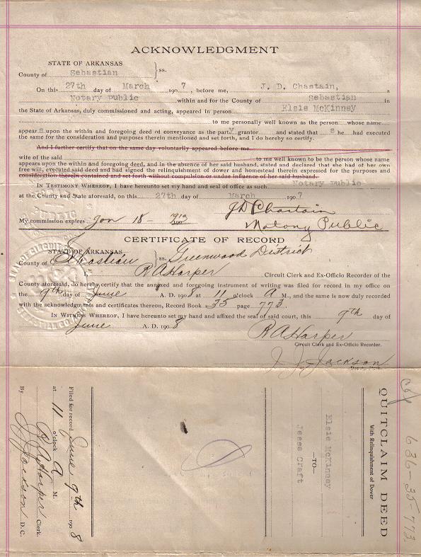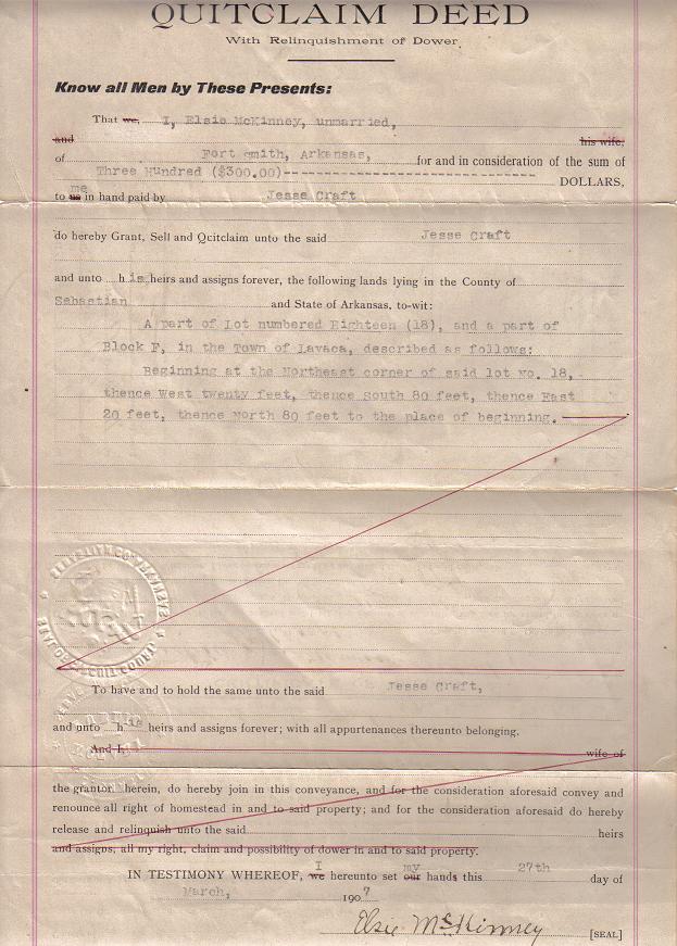 Deed from Elsie McKinney to Jesse Craft - 1907